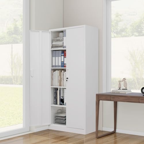 BTMスチール書庫は高さ180cm、5段の鍵付きオフィスキャビネットです。A4書類対応で可動棚板があり、オフィス、学校、更衣室など多用途に適しています。