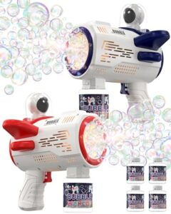 Zaahir シャボン玉 電動 2個セット 宇宙飛行士 バブルガン 予備ボトル4瓶 360°液漏れ防止 6つ特大泡穴 LEDライト 自動 USB充電式 長距離発射 おもちゃ バブルガンマシン 子供 結婚式 キャンプ 外遊び 誕生日 こどもの日 プレゼント 女の子 男の子 ギフト (青赤セット)