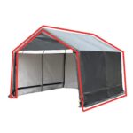 ALL GUARDのガレージテントは3x3mのサイズで、交換用天幕・側面幕が付属。入り口付きで、自転車やバイクの収納に最適。屋根付きで倉庫としても使用可能。
