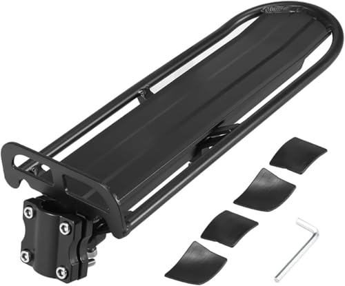 自転車用アルミ製荷台、耐荷重10kgのリアキャリアです。後付け可能で、パニアバッグや荷物ラックとして便利。伸縮自在で簡単取付けが特徴です。
