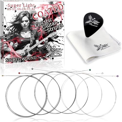 Phoenix コーティング弦 エレキ ギター 弦 ニッケル バランス良い音質 テンション 切れにくい ポールエンド色分け/お手入れクロス&ピック 付き<長期保証45日間> (SuperLight)の製品情報