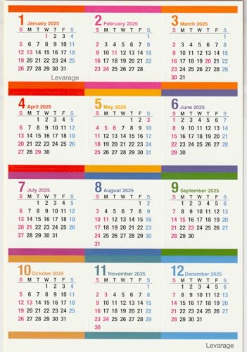 Levarageの2025年版カレンダーは、貼ってはがせるシールカレンダーです。台紙ははがきサイズで、ひと月ごとに貼り直しが可能。令和七年に対応した便利な商品です。
