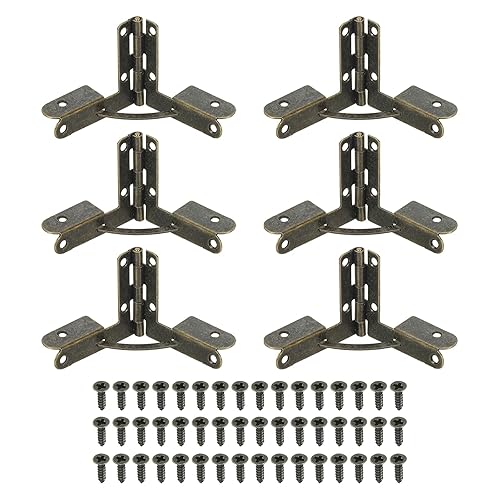 90度折りたたみサポートヒンジ6個パック。サイズ1.2インチ x 1.4インチ。家具やジュエリーワインキャビネットに最適。ネジ付きで取り付け簡単。色はブラウン。