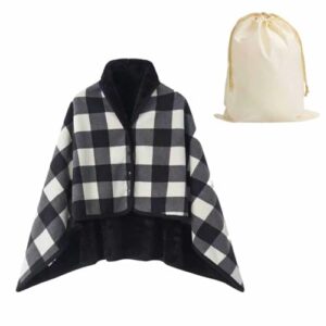 TanweiJP 大判ひざかけ 膝掛け ブランケット チェック柄 2つのサイズ ボタン付き 暖かいショール ひざかけ 吸湿発熱 冬 防寒対策 静電気防止 着る毛布 肌に優しく、繊細で柔らかく滑らか 家 オフイス 昼寝用 アウトドア 出張 キャンプ すべての季節に適しています (白黒, 80*135cm)