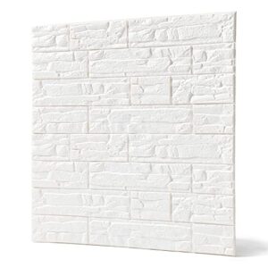 [壁紙研究所]超大判 レンガ調 3Dクッション 3D壁紙 3D立体壁紙 70㎝x70㎝ レンガ 防音シートウォールステッカー 3D 壁紙 軽量 防水 断熱 石柄 [石柄ホワイト-10枚]