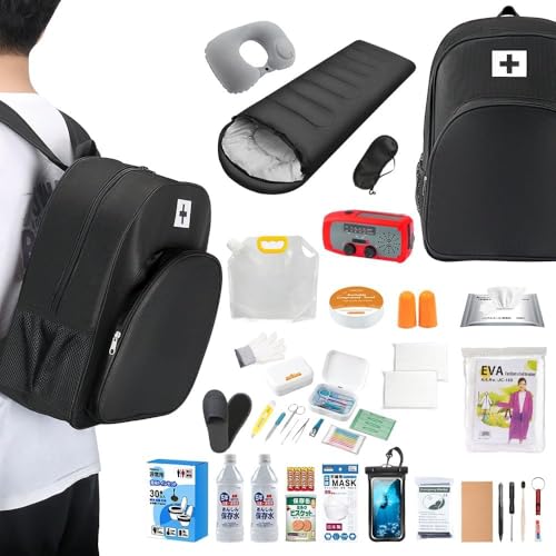 防災リュックは防災士監修の32点セット。簡易トイレ、寝袋、ラジオ、懐中電灯などが揃い、地震対策や非常時に備えた救急セット付き。保管も簡単で、個人用に最適です。
