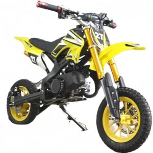 TVT 49ccミニモトクロス モトクロス エンジン 2ストローク ミニバイク ガソリンパワー モトクロス オフロードタイヤ付き 衝撃吸収 スプリング シートクッション ポケット モトクロス エンジンバイク フロントリアディスクブレーキ付き グリーン (ブラック)
