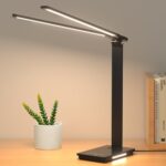 新登場のスタンドライトは、ダブルライトバー設計で超高輝度。5段階の調光・調色が可能で、タッチセンサーや多角度調整、タイマー機能を搭載。省エネ設計で学習机や読書用に最適なLEDライト(ブラック)。