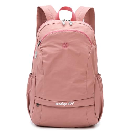 リュック メンズ レデイース エコリュック 25L 軽量 折りたたみ 大容量 おしゃれ ナイロン 撥水加工 スポーツリュック 男女兼用 通気性 防犯機能付き 学生やアウトドアに最適なピンク色のリュックです。