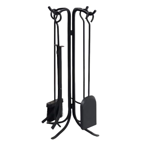 TAYTHIの5点薪ストーブツールセットは、錬鉄製で耐久性抜群。シャベル、ほうき、ポーカー、火ばさみを含み、屋内外の暖炉や薪ストーブに最適なブラックデザインです。