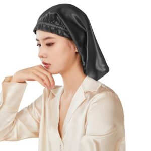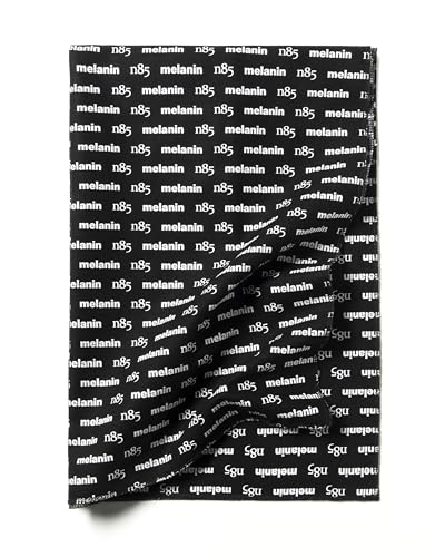 メラニンのストレッチサテンヘッドラップは、女性向けのヘアアクセサリーで、テクスチャードヘアを保護しスタイリングに最適です。ロゴ入り、1個パック。