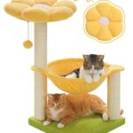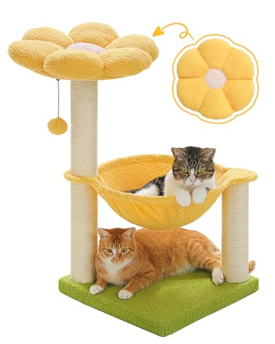 PAWZ Roadキャットタワーは、高さ70cmで、かわいい花形デザインのミニタイプ。低い構造で、猫ハンモックと爪研ぎポール付き。コンパクトでおしゃれ、簡単に組み立てられます。