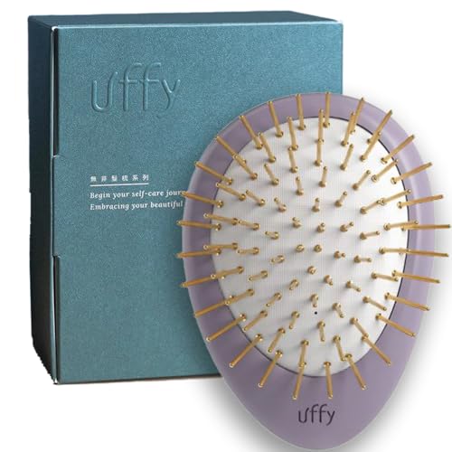 Uffy ブラシ(AcuBrusher)は、特許技術を用いた頭皮&顔用ヘアブラシです。美髪ケアに最適で、ナチュラルなデザインとパープル・ゴールドのカラー展開が人気のギフトアイテムです。