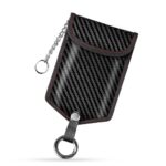 T-carbonの電波遮断ポーチは、スマートキーを安全に保護し、リレーアタックを防止します。カーセキュリティ対策に最適。クリップ付きで携帯しやすい、ブラックのシンプルなデザインです。