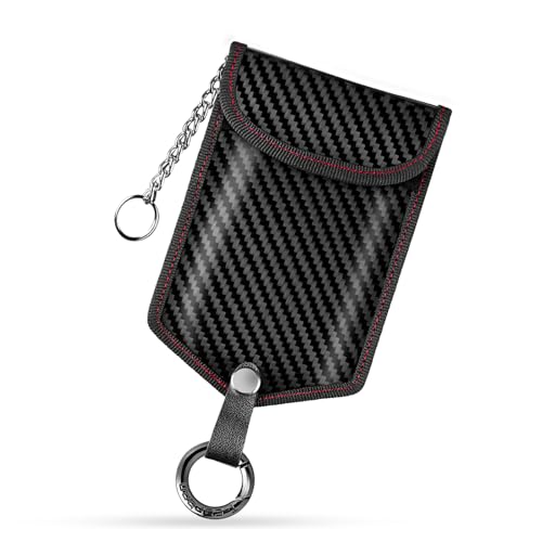 [T-carbon] 電波遮断ポーチ スマートキーケース ポーチ リレーアタック防止 対策 カーセキュリティ 車の盗難防止 信号遮断ポーチ クリップ付き (ブラック)の高価買取