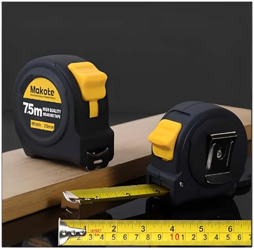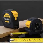 25フィートの格納式巻尺。メートル法が読みやすいインペリアル定規。セルフロックブレード付きで安全・便利。職人向けのブラックカラー。