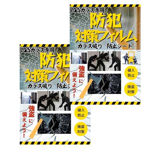 防犯対策フィルムは凹凸ガラス専用の2枚セット(300mm×450mm)。強盗や侵入を防ぎ、ガラス破りを防止します。地震時の防災にも役立つ日本ブランドの空き巣対策用品です。