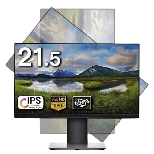 デ ル21.5インチモニター P2219HはFHDのフレームレスIPSパネルを搭載。VESA準拠、画面回転、高さ調整が可能。入力端子はDP、HDMI、VGA、USBハブ付き。PS5やSwitchにも対応。付属品は電源ケーブルとHDMIケーブル。