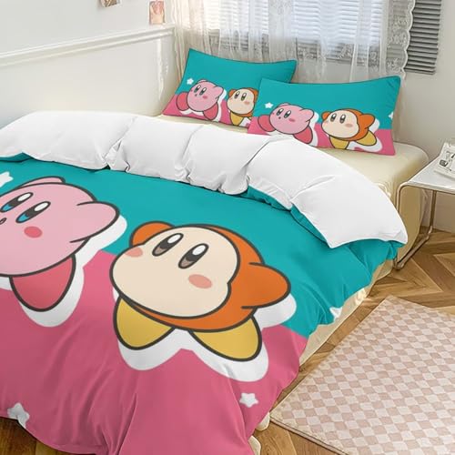 星のカービィの布団カバー3点セット(掛布団カバー・枕カバー・シングルサイズ)は、洗いざらしでやわらかく、肌に優しい素材。吸水速乾で丸洗い可能。サイズは86″x70″。寝具を可愛く彩ります。