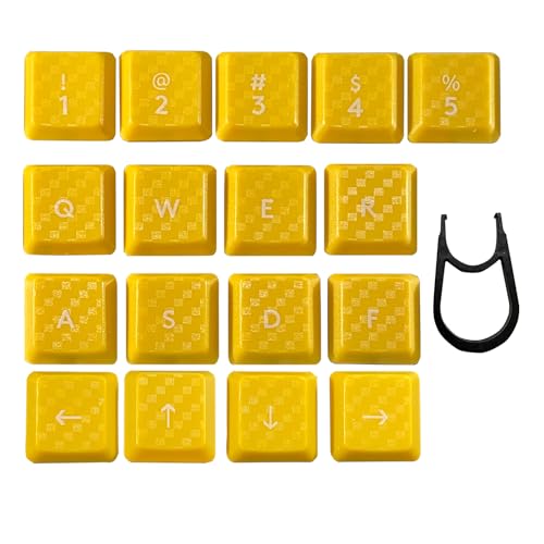 PBT高級素材で、Logitech G913/G815/G813/G915 TKL RGB メカニカルゲーミングキーボードに適用。炭素繊維パターンの17キーキャップ、黄色。耐久性抜群でスタイリッシュなデザイン。