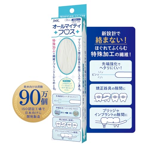 100本入りのスーパーフロスは、通しやすく絡みにくい改良版。55cmの長さで、虫歯や歯周病予防に最適。携帯に便利なデンタルフロス。ISO認証工場製。