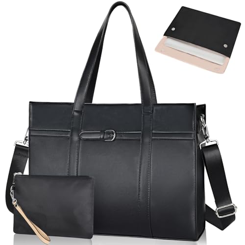 ESTARER レディース ラップトップトートバッグは15.6インチ対応の防水レザーワークバッグ。ノートパソコンスリーブ付きで、仕事や旅行、オフィス用に最適なLサイズのショルダーバッグです。