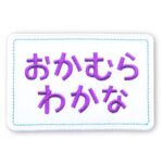 刺繍ザウルスのセミオーダーお名前ワッペン・ゼッケンは、氏名を横書きで2列に中央ぞろえ、クラス名なしでデザインできます。サイズは小さめの5×9㎝以下。おしゃれで実用的なアイテムです。