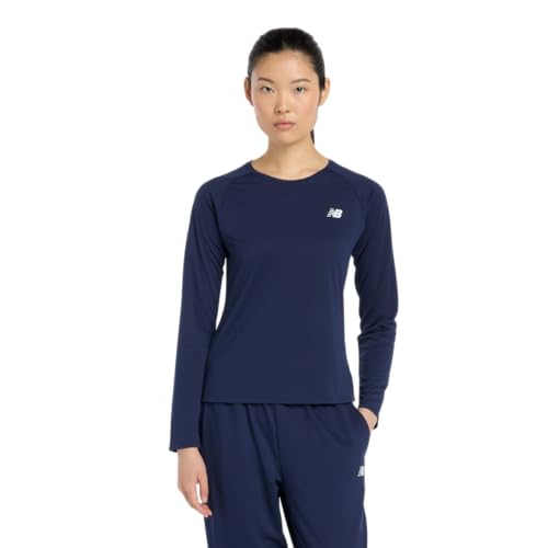 ニューバランス AWT53404 Sport Long Sleeveは、女性用の長袖Tシャツで、チームネイビー色です。快適な着心地を提供し、スポーツや普段使いに最適なデザインが特徴です。