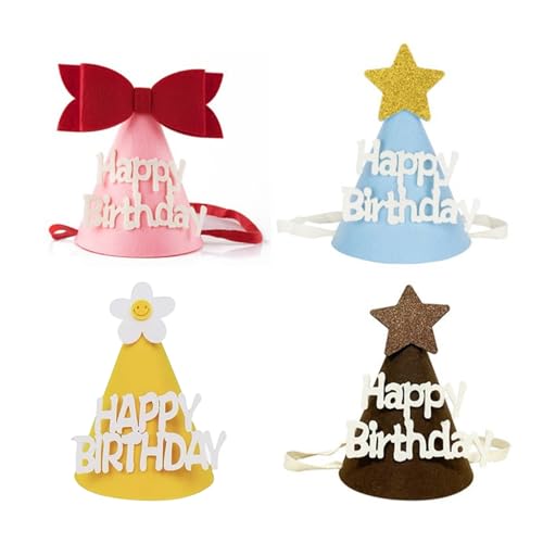 誕生日お祝いに最適な4個セットのコーンハットです。キッズから大人まで使用可能で、パーティーを盛り上げます。写真撮影時にもぴったりな可愛いデザインが魅力です。