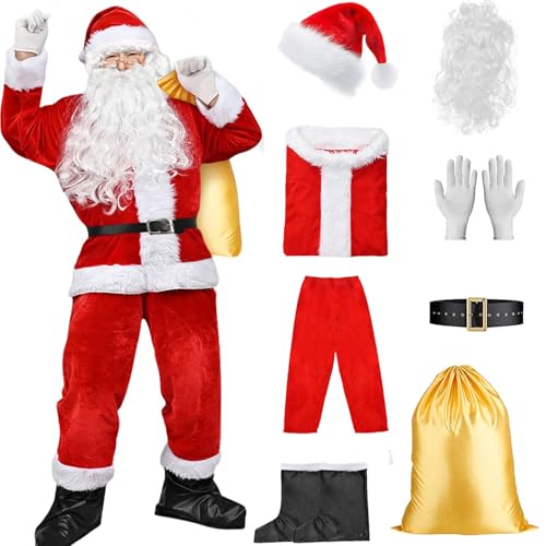 KASTOBSのサンタクロース衣装8点セットは、厚手の大人用コスプレ用コスチュームです。クリスマスや新年会、文化祭などのイベントやパーティーに最適です。サイズはLです。