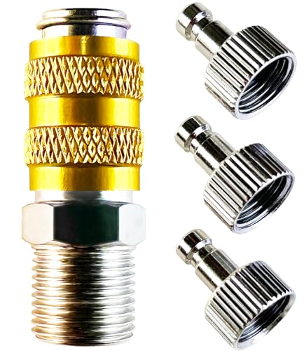 【エアブラシワークス】AW-010 エアブラシ ジョイント クイックジョイント プラグ3個付きセット 日本メーカー ワンタッチジョイント エアブラシ用ジョイント クイックチェンジジョイント カプラー (クイックジョイント イエロー) 高価買取中