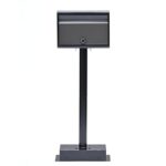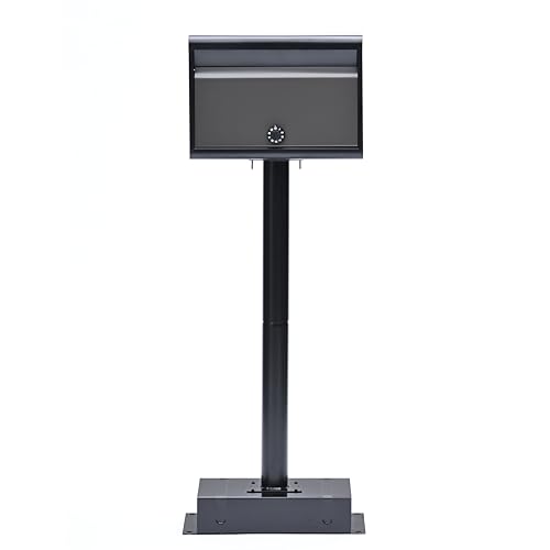 グリーンライフの壁掛けポストは日本製のスチール製でA4サイズに対応。ダイヤル錠付きで色はブラック×アッシュグレー。ポストスタンドは置くだけで設置可能で、スチール製のシンプルなデザイン。ブロックで固定できます。