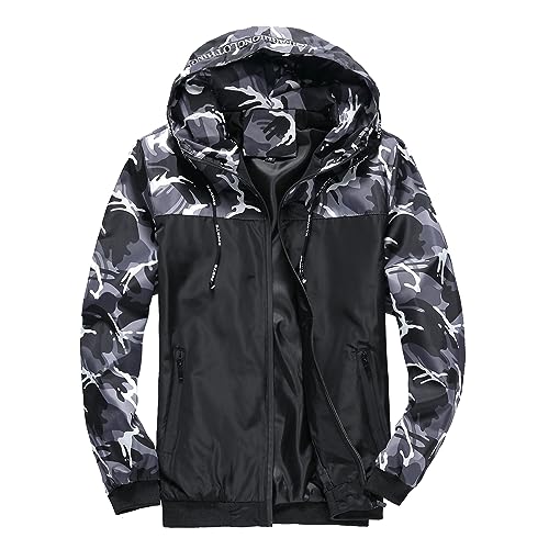 Qunqeneのウインドブレーカーは、メンズ向けのカモフラ柄マウンテンパーカーです。フード付きで軽量、防風・撥水機能あり。アウトドアやカジュアルなシーンに最適で、釣りや登山、ランニングにも対応。大きいサイズも取り揃えています。