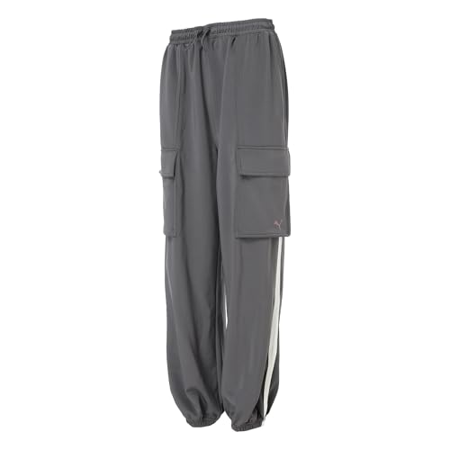 プーマのトレーニングジムスタジオ用ロングパンツ。速乾素材を使用したTRN EDGEパンツ、527993。レディース用で、25年秋冬カラーのダスキーグレー(44)が特徴です。快適なフィット感でトレーニングをサポート。