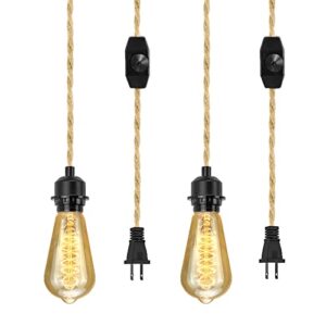LYOOWNG プラグインペンダントライトコード、ファームハウスペンダントライトキット、15フィート麻ローププラグインハンギングライトコードキット調光スイッチ付き、E26 E27ライトソケットコードDIY照明器具、2パック