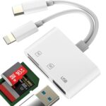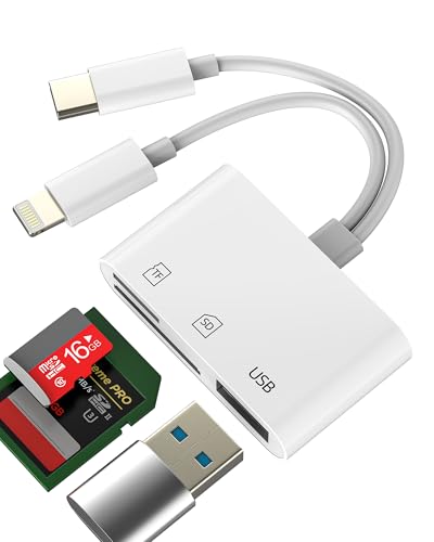 USB C Lightning対応のSD/Micro SDカードリーダーアダプター。iPhone 16/15/14 Pro Max、iPad、Samsung、MacBookと外部カメラに対応。データ転送が簡単に行えます。