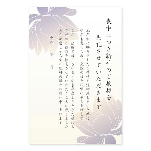 喪中はがき 20枚セット。年賀状じまい用の私製ハガキ。インクジェット印刷対応。印刷済みタイプで、無地・絵柄のみのバリエーション。切手不要の年賀状欠礼に最適です。(H.(喪中) ハス 年賀状じまい AL108)