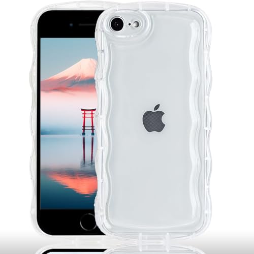 AVETULのiPhone 7/8/SE2/SE3ケースは、クリアでおしゃれなウェーブデザイン。黄ばみ防止のソフトTPU製、滑り止め機能つき。薄型・軽量でアクスタ収納可、ワイヤレス充電対応、ストラップホールあり。
