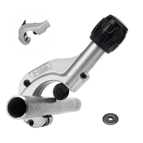 パイプカッター シルバーPC35は、切断能力3~35mmで、面取りカッターと替え刃付き。ステンレス、銅管、鉄などの金属パイプを挟んで回すだけで簡単に切断できます。