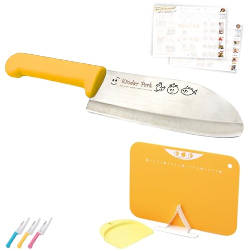 現役フードスタイリスト監修 かんたんお子様向けミニレシピ付き 子ども包丁 まな板セット まな板ヘルパー 日本製 両刃 左利き対応 キッズナイフ キッズ包丁 ステンレス 本格派 包丁 富士カトラリー キッズ包丁 子供包丁 子供用包丁 子供向け包丁 安心 安全 金属加工の町 新潟 (イエロー)の高価買取