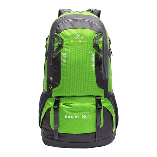 PORRASSO リュックは60Lの大容量で、撥水性ナイロン使用。多機能でポケットが多く、登山杖固定可能。給水袋入れや夜間反射も備え、男女兼用。アウトドアや旅行、キャンピング、買い物に最適。