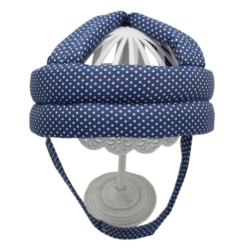 Fiegcitの全綿生地ヘッドガードは、大人向けの頭部保護具で、介護や転倒防止に最適です。室内外で使用でき、青い点デザインのベルクロバージョンです。高齢者の怪我防止に役立ちます。