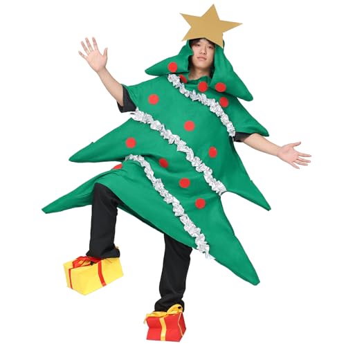 クリスマスツリーコスプレ衣装2点セットは、華やかな緑のドレスとツリー飾りの帽子がセット。パーティーやイベントに最適で、楽しい雰囲気を演出します。サイズはフリーで、簡単に着用できます。
