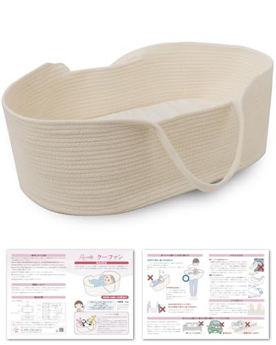保育士監修のクーファンは、赤ちゃんの寝返り防止や添い寝に最適なベビーバスケットです。持ち運びが簡単で、お昼寝にも便利。ホワイトカラーでおしゃれなデザインが特徴です。