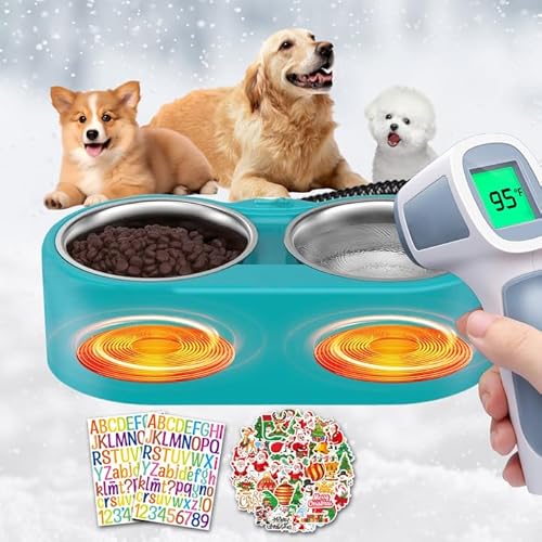 猫 犬用 温水ボウル 1,332.4 g 取り外し可能なステンレススチールダブルボウルウォーマー 水と食べ物 防水加熱ドッグボウル 屋外 冬のペット用 ステッカー付きの高価買取