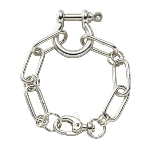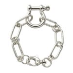 クリームドットのブレスレットは、人気のアンカーシャックルデザインでシルバー色。オーバルチェーンが特徴的で、ゴツめのボリューム感が魅力。存在感があり、調整可能なワンサイズです。
