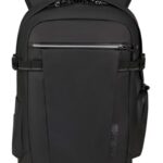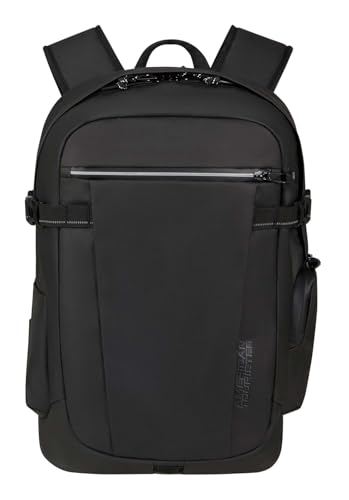 American Touristerのノートパソコン用バックパックは、ブラックとホワイトの洗練されたデザインで、ラージサイズです。耐久性と機能性に優れ、収納力に富んでいます。