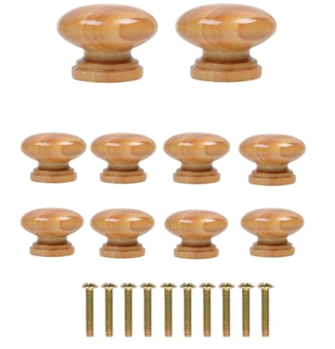 木製取っ手は、キャビネットや引き出しに最適なデザイン。10個セットで、ネジも付属。DIYプロジェクトや家具のリフォームにぴったりです。シンプルで温かみのある木の色が特徴。