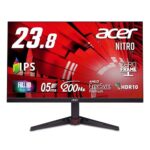Acer Nitro VG240YX1bmiipxは23.8インチのIPSフルHDゲーミングモニターです。200Hzのリフレッシュレート、0.5msの応答速度、sRGB 99%対応。AMD FreeSync PremiumとHDR10をサポートし、HDMI 2.0とDisplayPort v1.2を搭載しています。