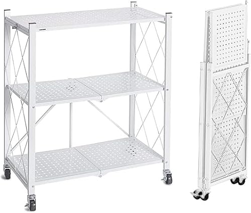 KRTDの折りたたみラックは、幅70cmのキャスター付きで移動が便利です。組み立て簡単、大容量のメタルスチール製オープンシェルフで、家電や食器、調味料の収納に最適。防サビ加工済み(3段、幅70×奥行34×高さ87cm、ホワイト)。